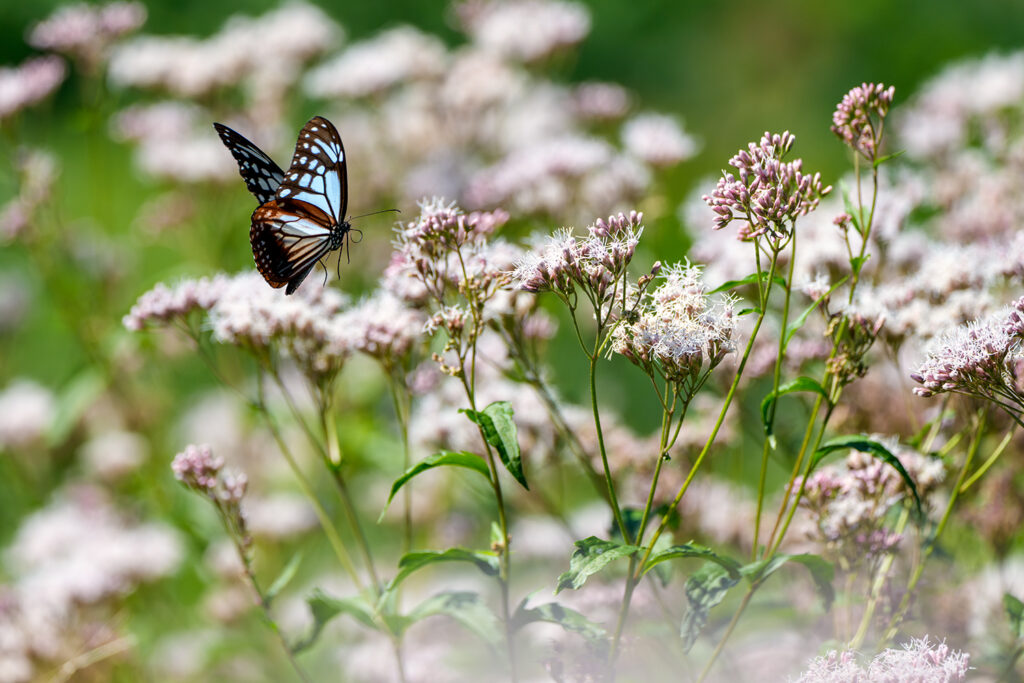 訪れた日はフジバカマが満開。最初はちらほらしか見えなかったアサギマダラも、1時間ほど待つうちにどんどん増えて、あちらこちらでひらひらと優雅に舞う姿をたっぷり堪能できました。まだしばらくは楽しめそうですよ。